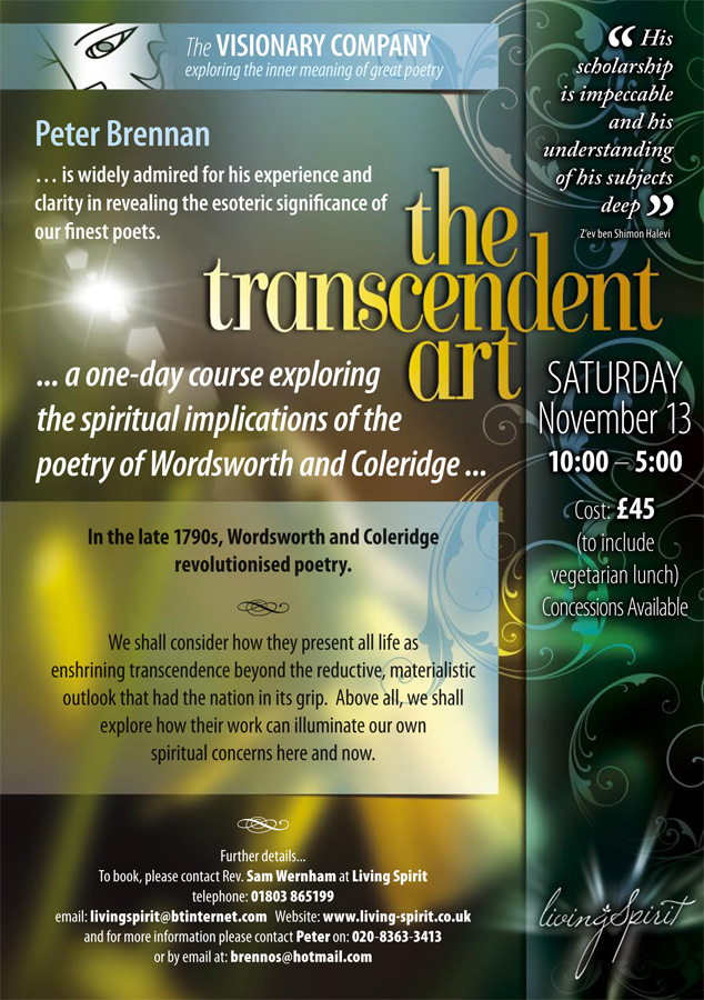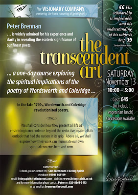 But in amidst the general chaos of my life, good things happen and this journal is my way of marking that. So here at last are a few words of appreciation for Peter Brennan’s wonderful day on ‘The Transcendent Art’… a great group of people spending a whole day with great poetry…what could be better.