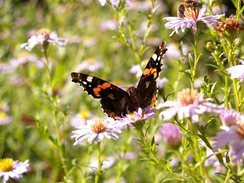 | The only fiery presence in the Vicarage garden was this red admiral butterfly on our Michaelmas daisies |